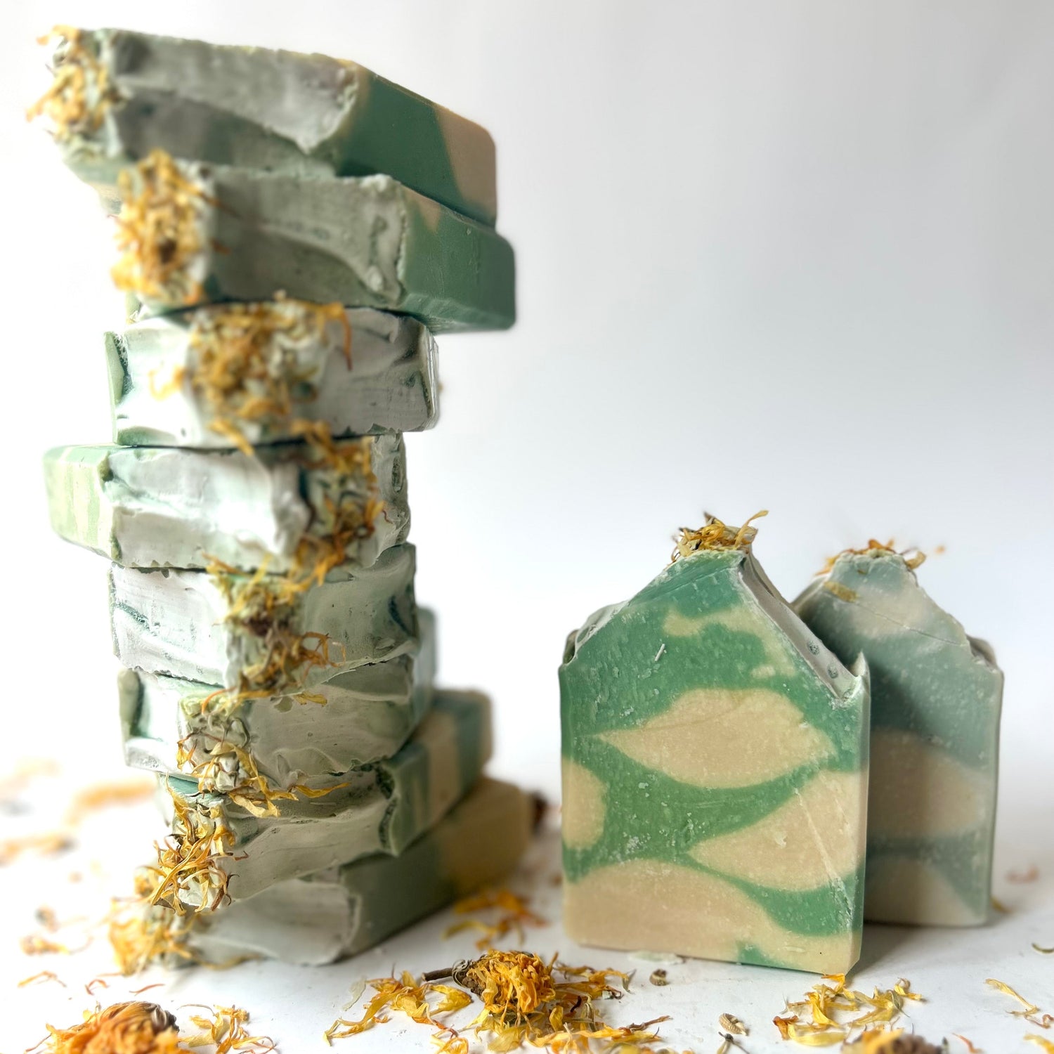 Our Body Care Collection includes handcrafted soaps, exfoliating soap savers, whipped tallow moisturizers, and lightweight body milks designed to gently cleanse, exfoliate, and nourish the skin every day.